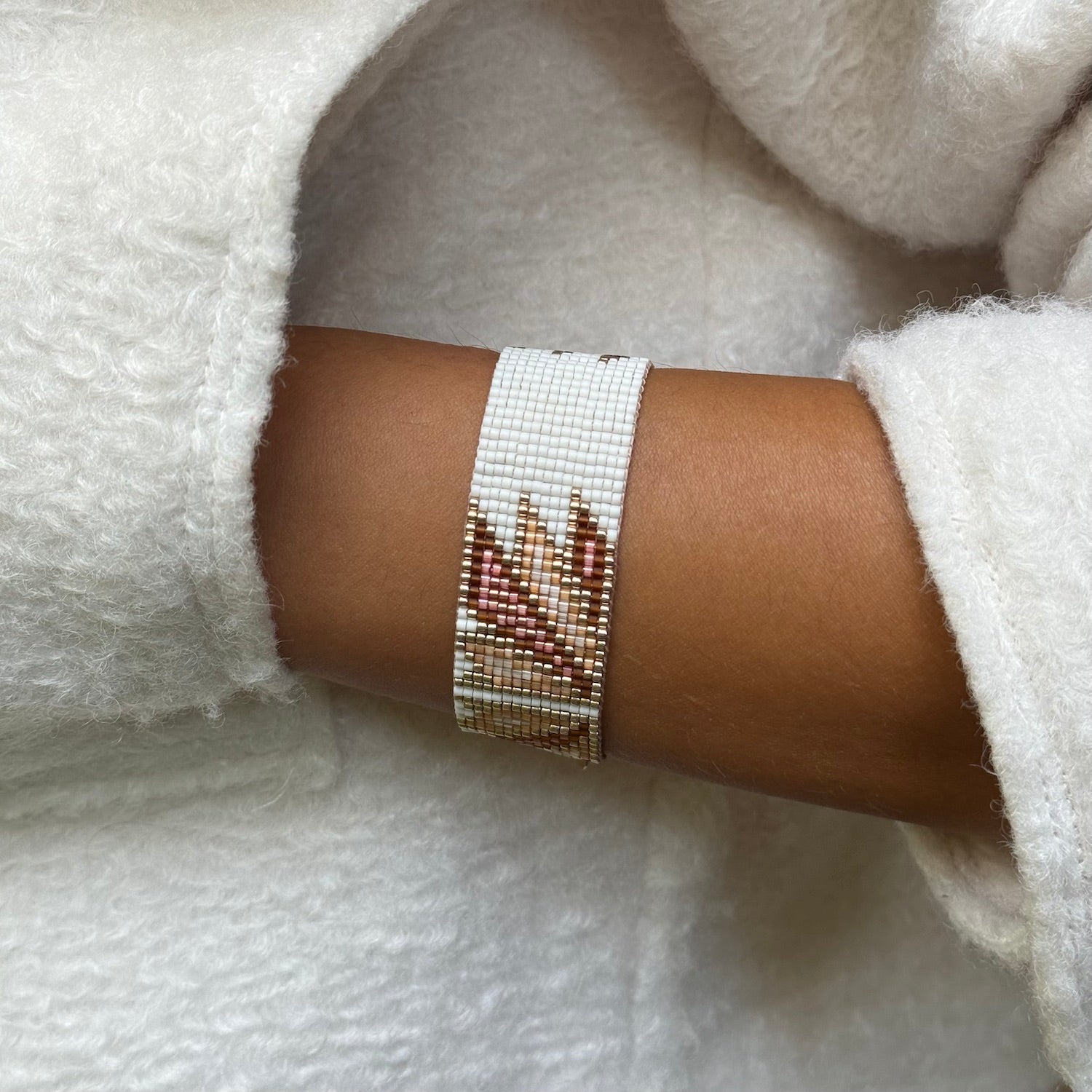 Daisy Pink, Fransız tasarımcı Marion Mazô tarafından tasarlanan özgün bir desenin, Touchary’nin el emeğiyle yeniden hayat bulduğu özel bir bileklik.