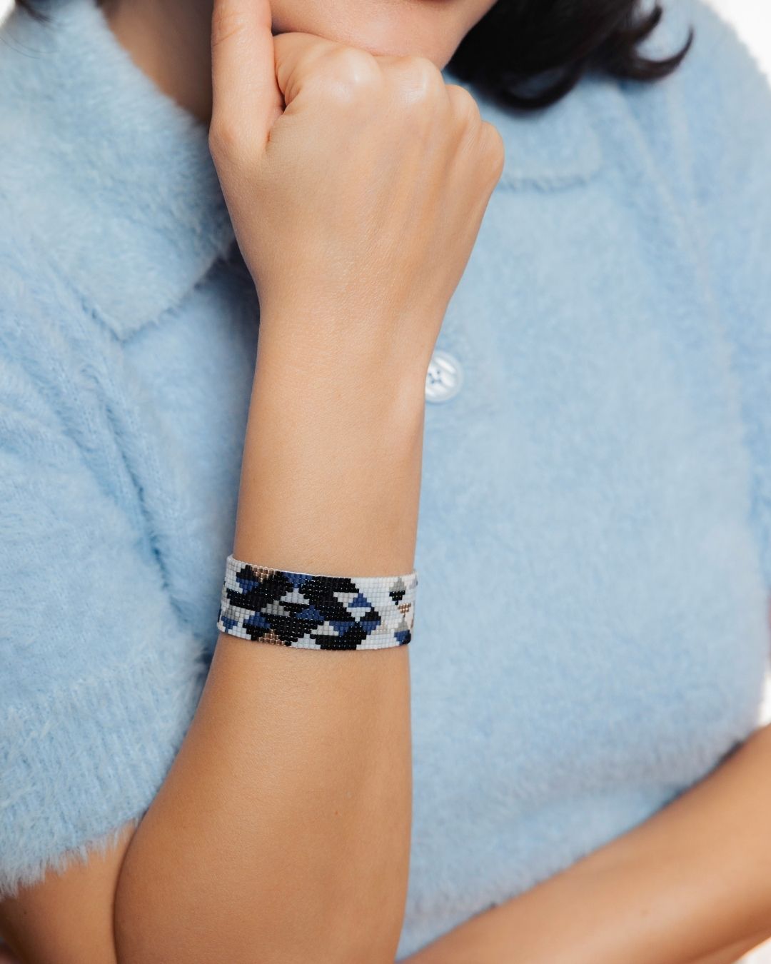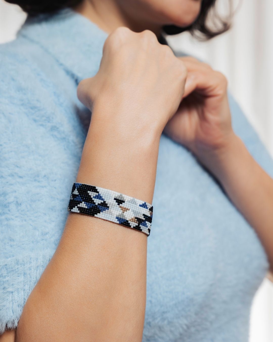 Touchary’nin el emeğiyle hazırlanan bu bileklik, modern stile sofistike bir dokunuş katıyor.