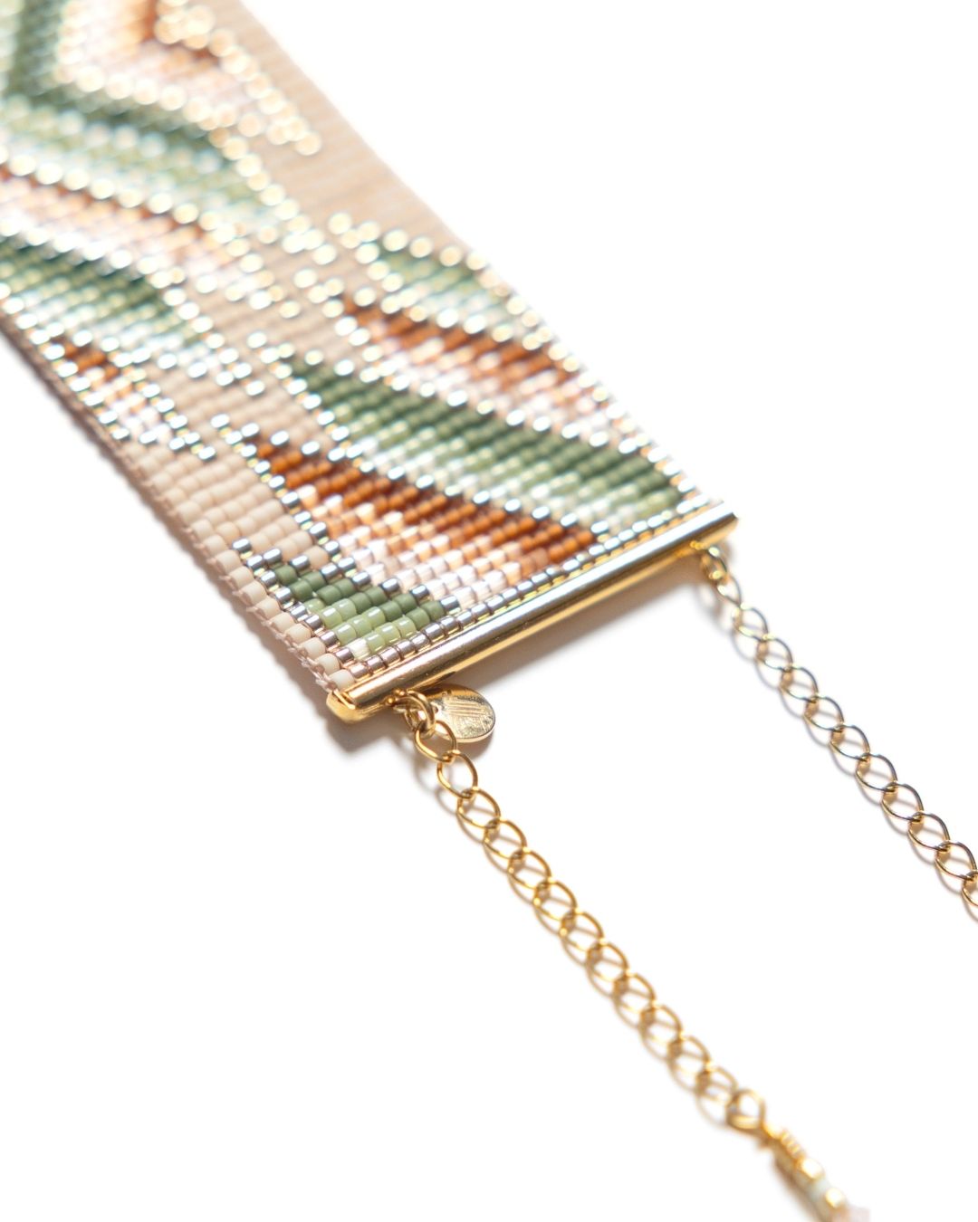 3,5 cm genişliğinde işlenen Gatsby, 14–19 cm arasında ayarlanabilir zinciri ve 14k altın kaplama metal detaylarıyla zarafetle dayanıklılığı bir araya getirir.
