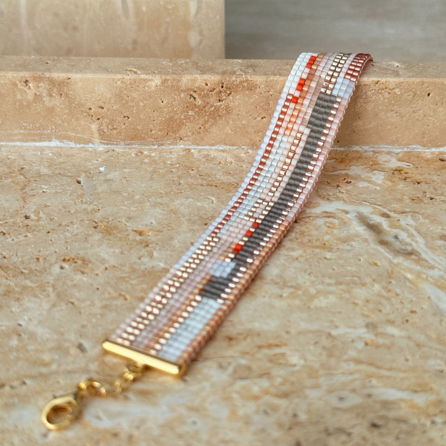 Handmade with care by Touchary, this bracelet is 1.5 cm wide and comes with an adjustable chain (14–19 cm) and 14k gold-plated details for a touch of elegance.