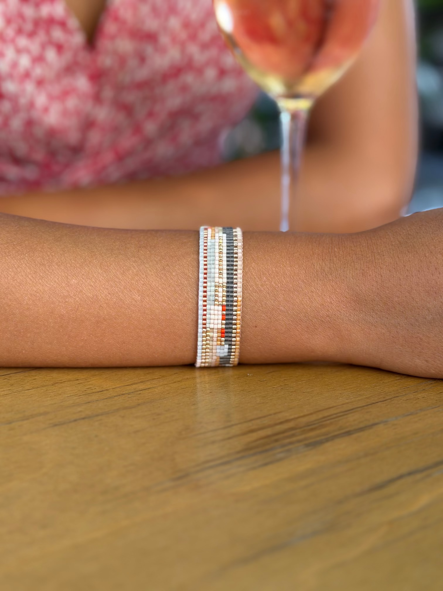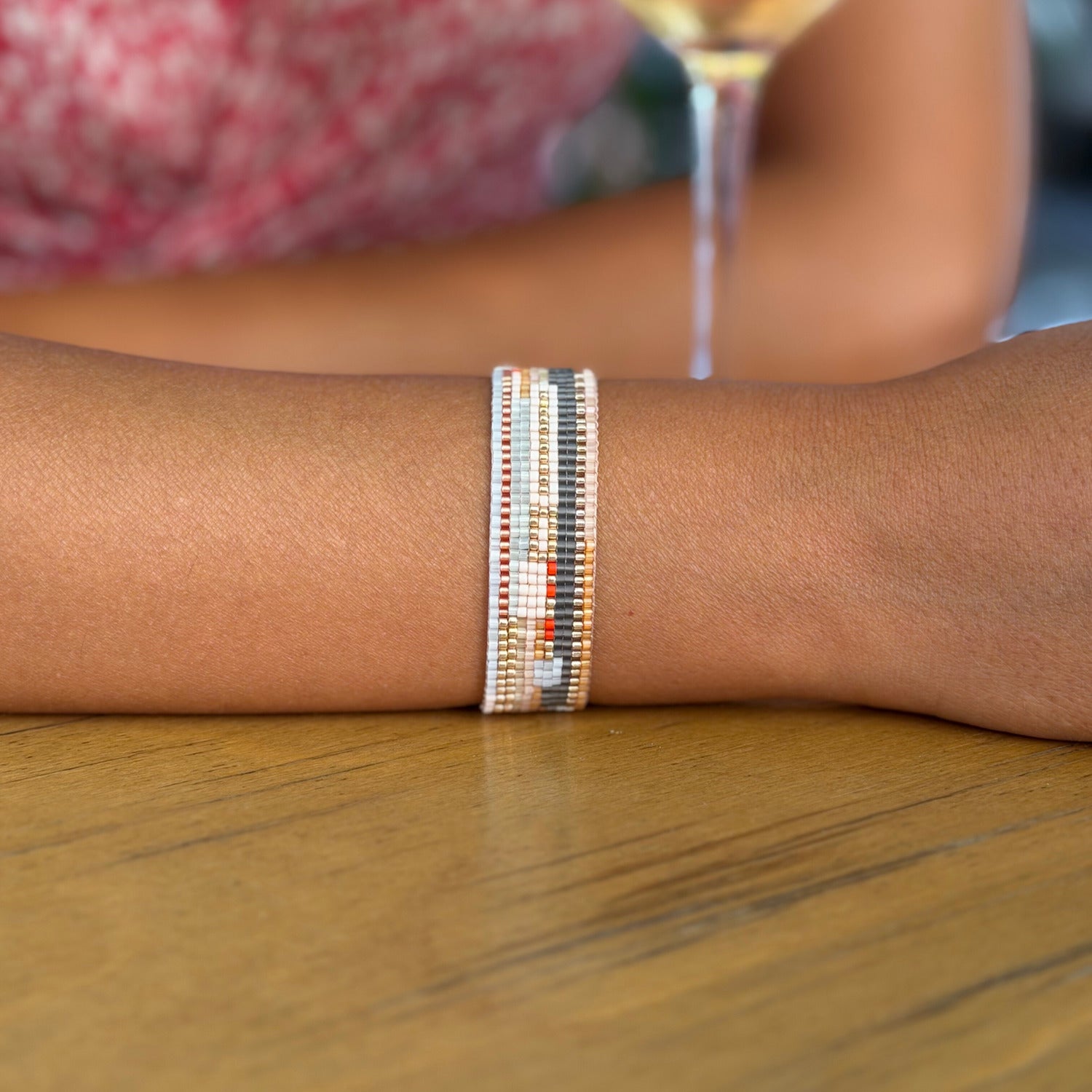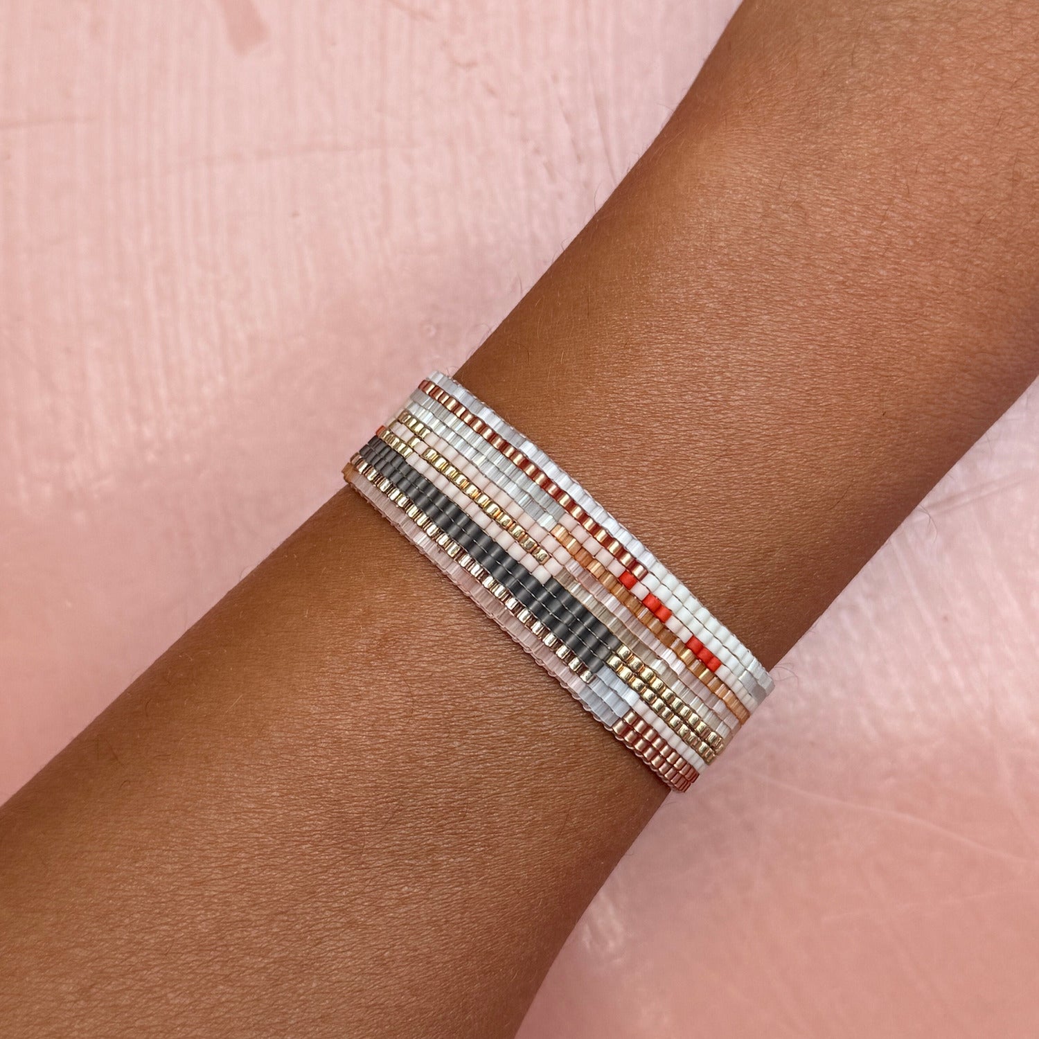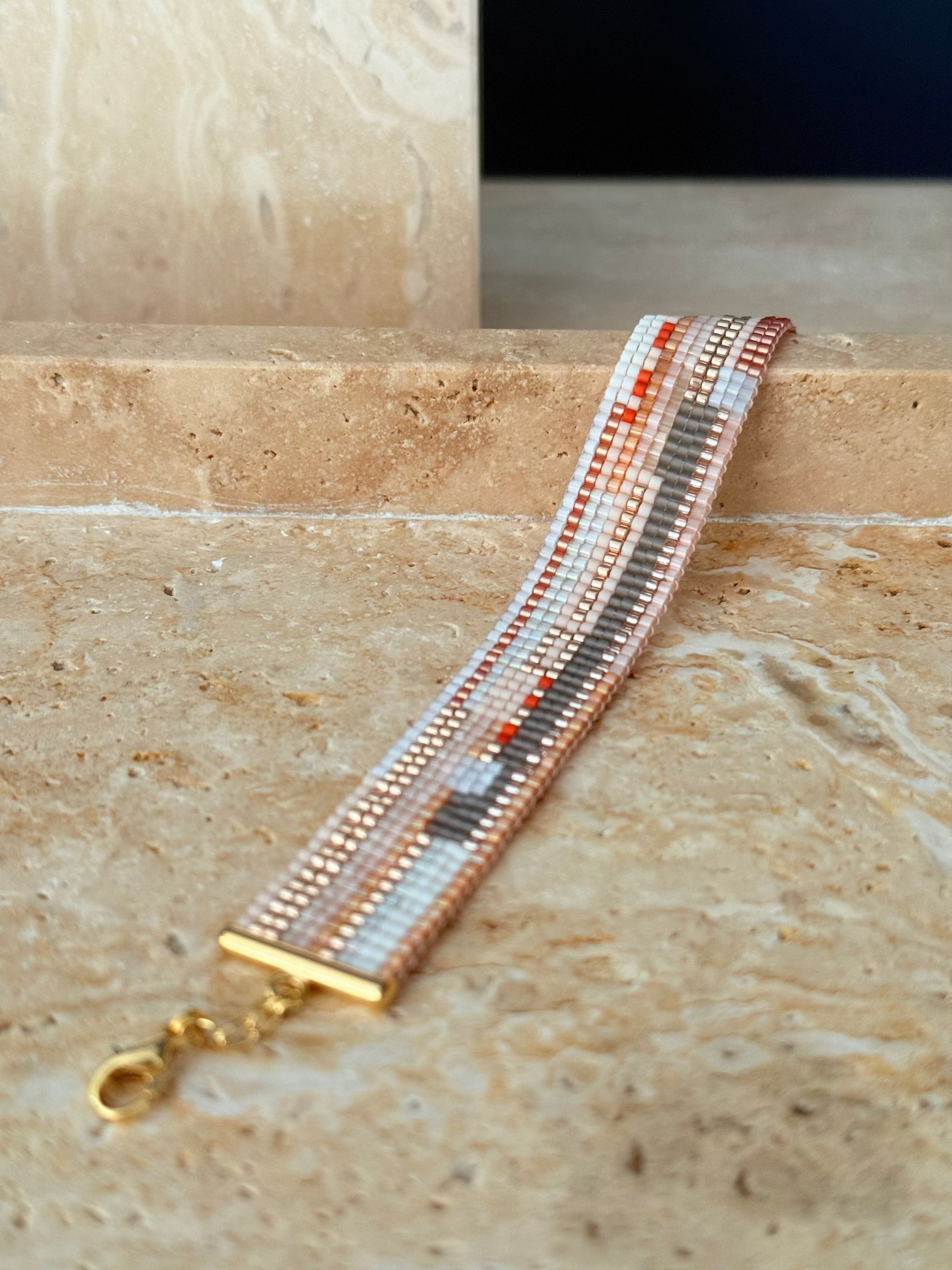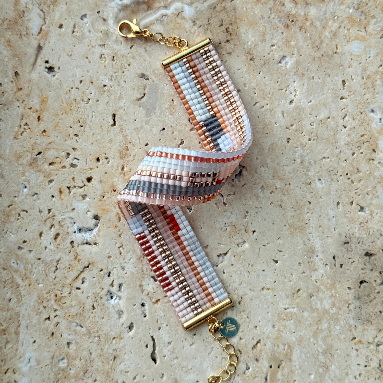 Hilma, Fransız tasarımcı Marion Mazô’nun tasarladığı, pastel tonların sıralı ve uyumlu çizgiler halinde birleşerek modern bir görünüm kazandığı özel bir bileklik.