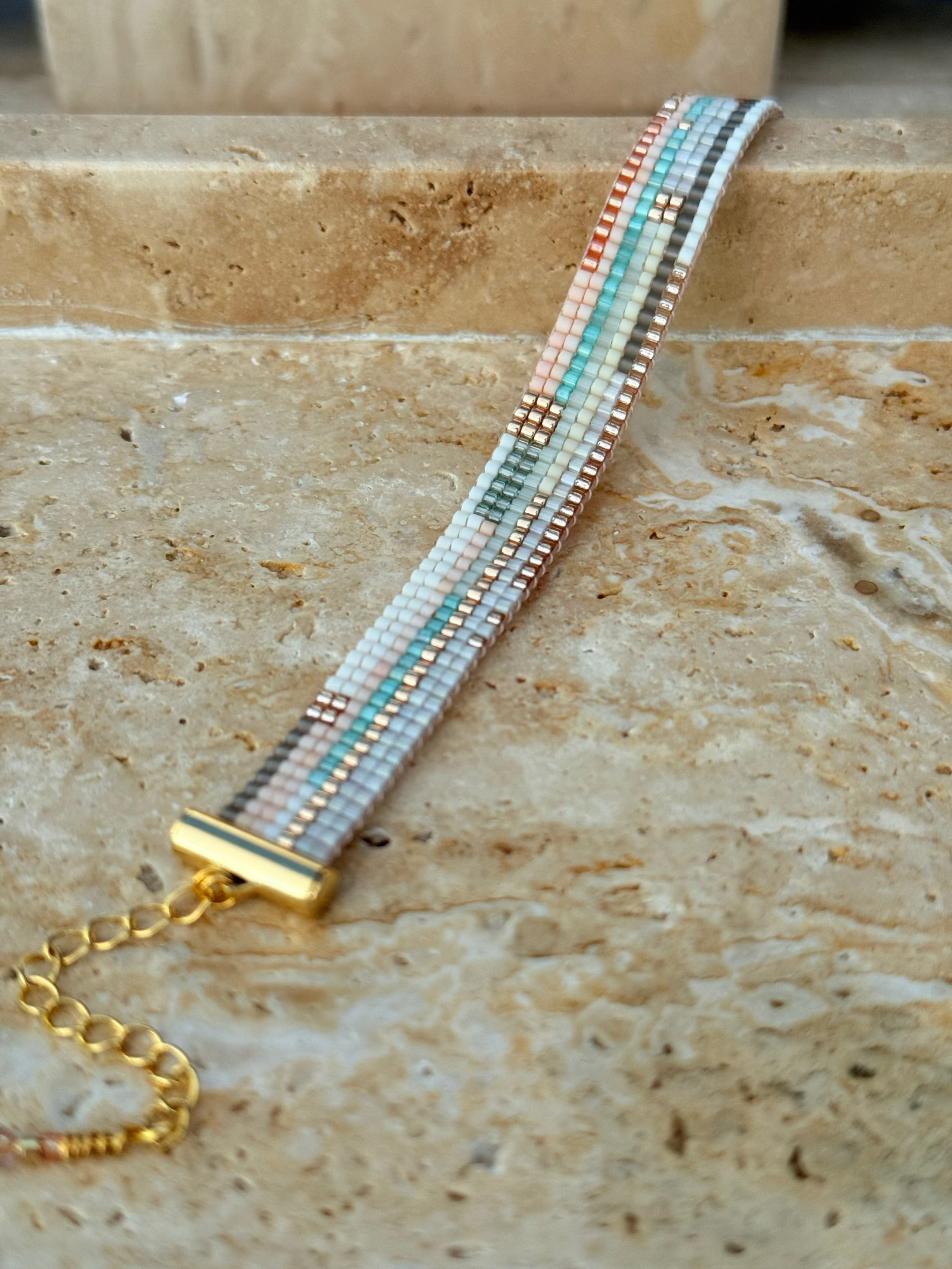Perlée is an original design by French designer Marion Mazô. With 1 cm width, this pattern is handmade by Touchary into a modern and chic bracelet.