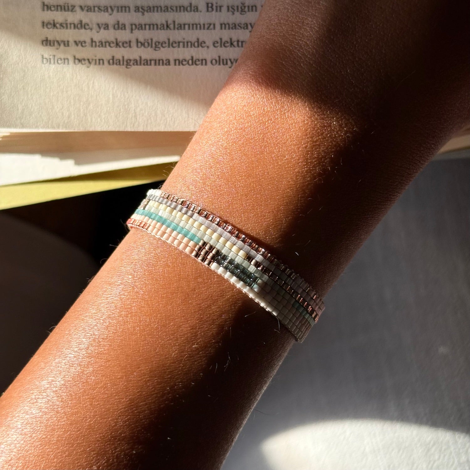 Perlée, Fransız tasarımcı Marion Mazô tarafından yaratılan özgün bir desen. 1 cm genişliğinde işlenen bu tasarım, Touchary’nin el emeğiyle modern ve şık bir bilekliğe dönüştü.